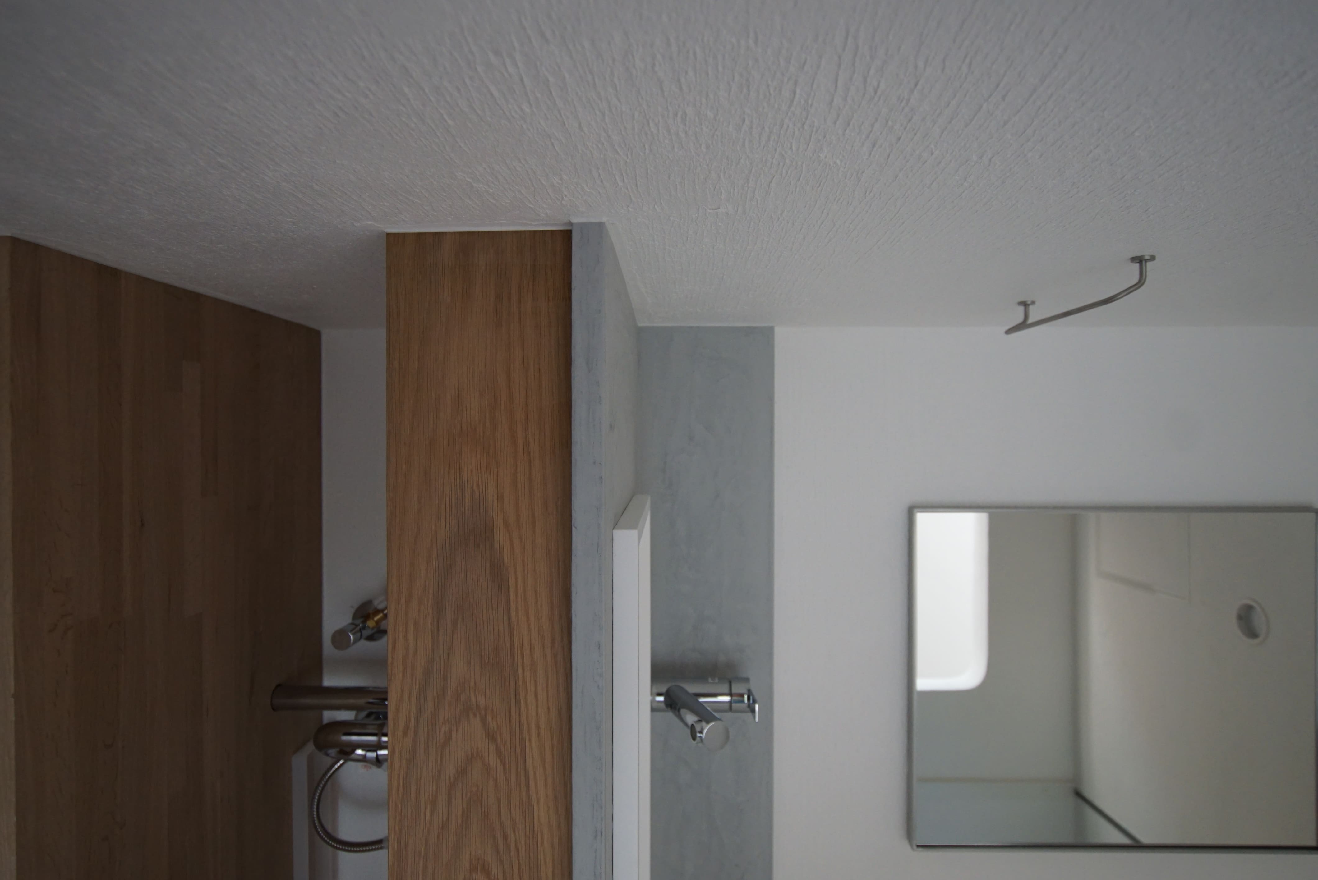 毎日使う洗面は、左官で仕上げた造作洗面台。